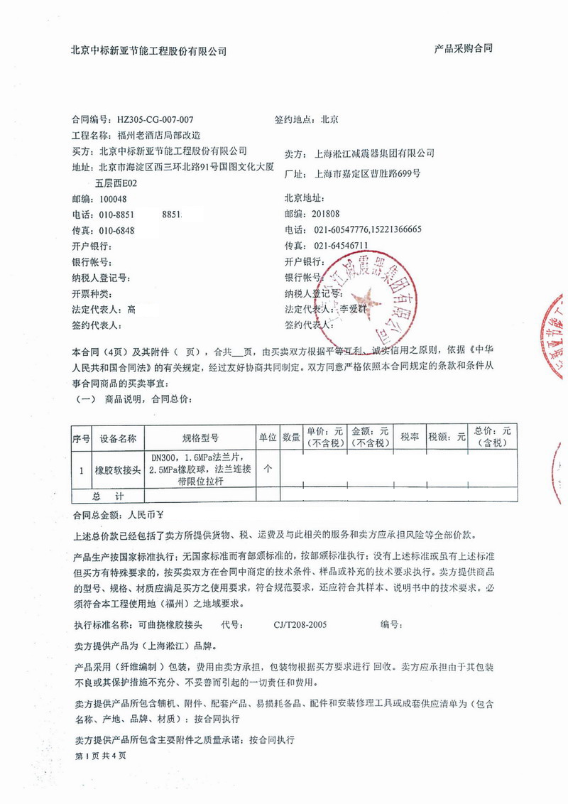 上海淞江減震器集團有限公司為您介紹:福州老酒店局部改造橡膠軟接頭合同案例信息,淞江集團銷售在2017年4月5日簽下該合同,為福州老酒店改造工程提供橡膠軟接頭產品,以下是詳細介紹。