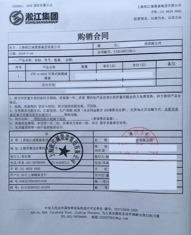 上海淞江減震器集團有限公司為您介紹:合肥離子醫院ZTF型彈簧減震器案例信息,淞江集團銷售在2018年4月26日簽下該項目,為合肥離子醫院提供ZTF型彈簧減震器產品。